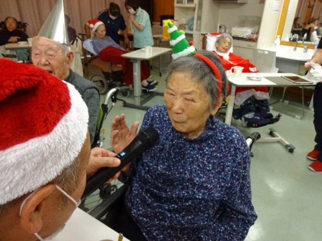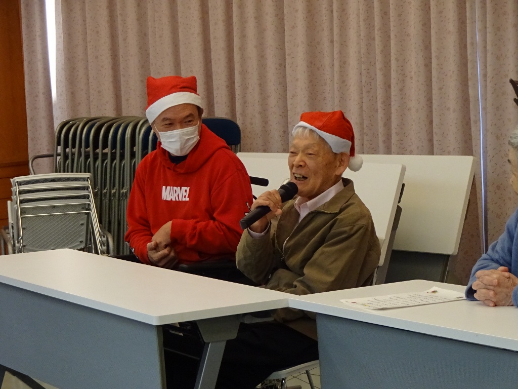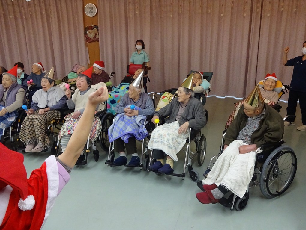 「クリスマスソングに合わせて体を動かした後は、職員の余興で大盛り上がり!笑顔あふれるひとときとなりました。」