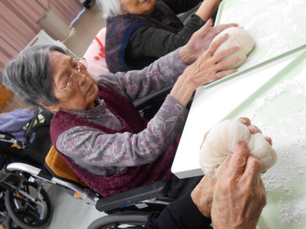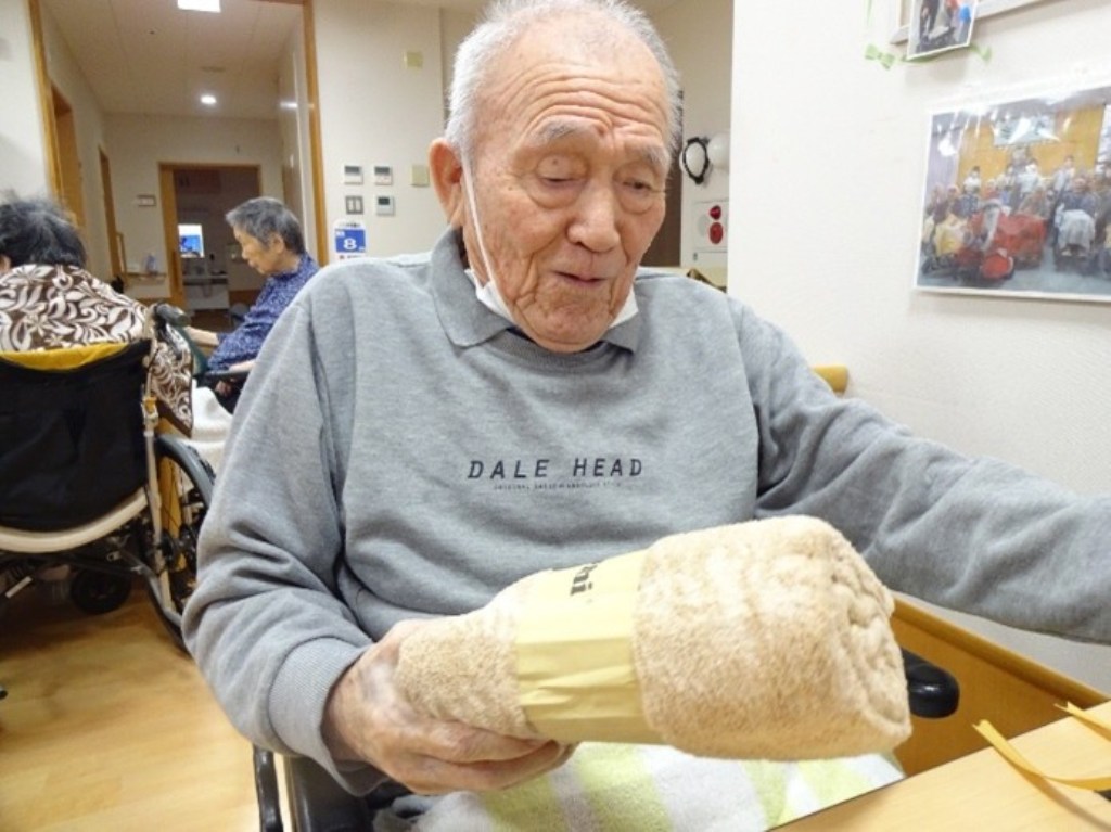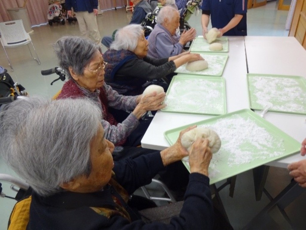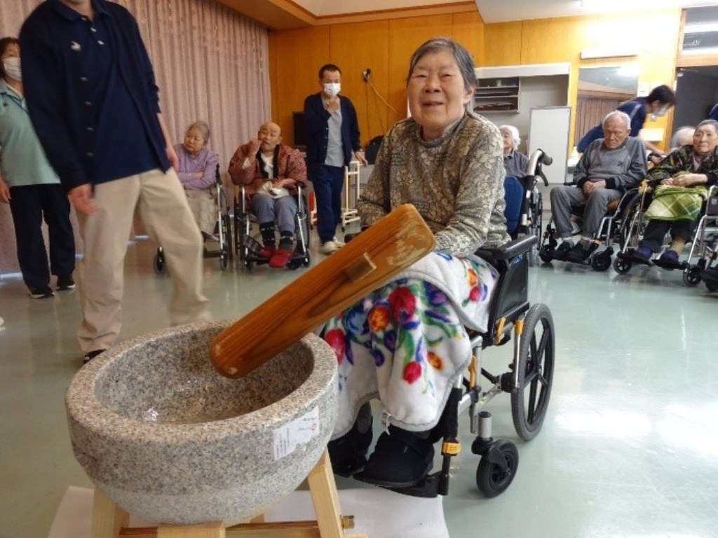 「入居者の皆さまで力を合わせてついたお餅が、見事な鏡餅になりました!」