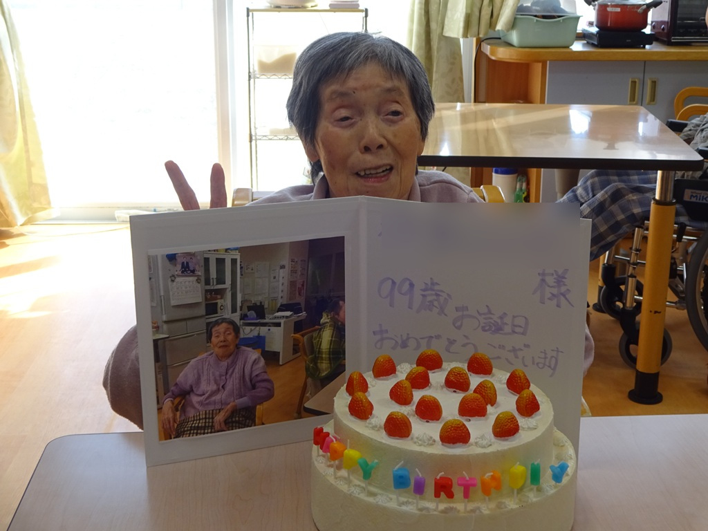 今月の誕生日の方です。ユニットの皆さんにお祝いしてもらいました。おめでとうございます!(^^)!
