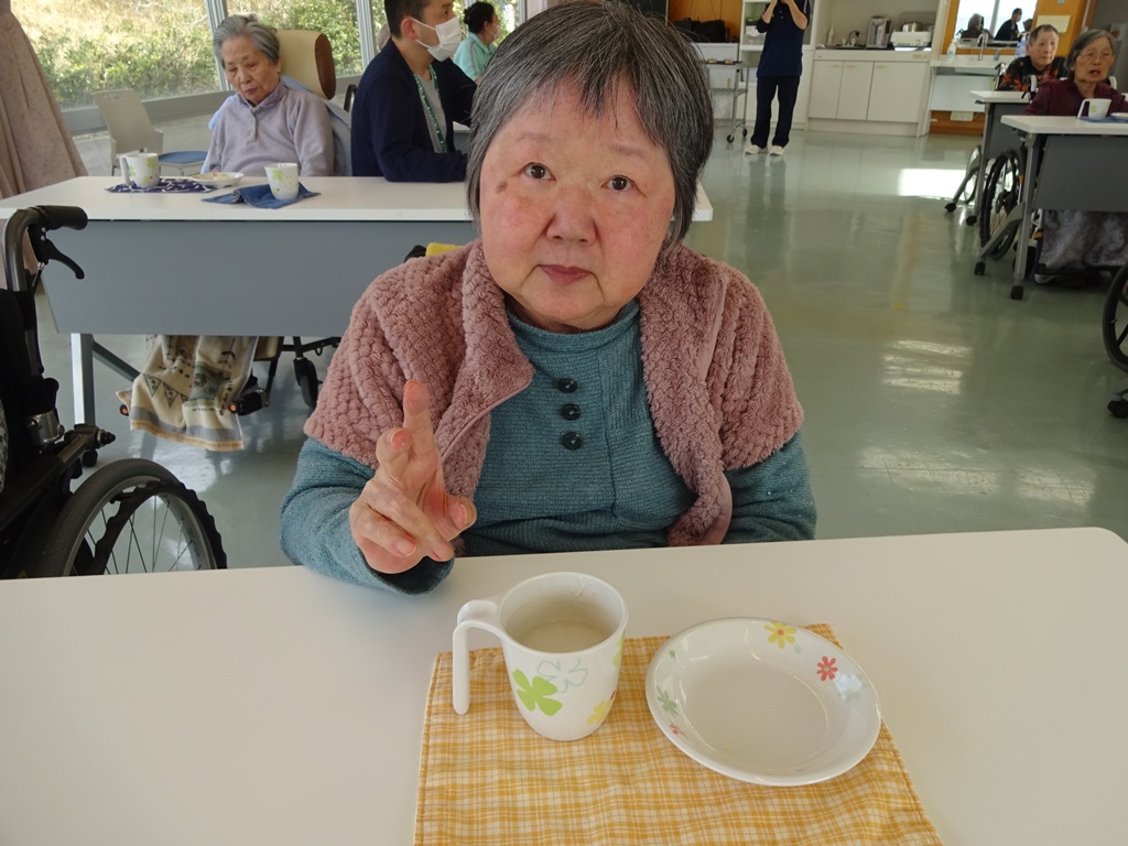今日のおやつは、甘酒でした。皆様おいしく召し上がっていました。