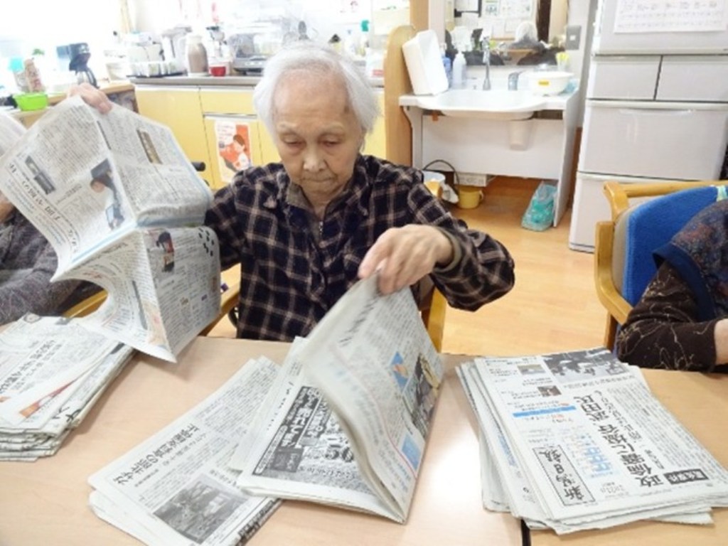 見てください、この真剣な表情。一枚の新聞紙も、皆さんの手にかかれば魔法のように美しくたたまれていきます。一人ひとりの丁寧な仕事のおかげで、作業は驚くほどスムーズに。いつも本当にありがとうございます!